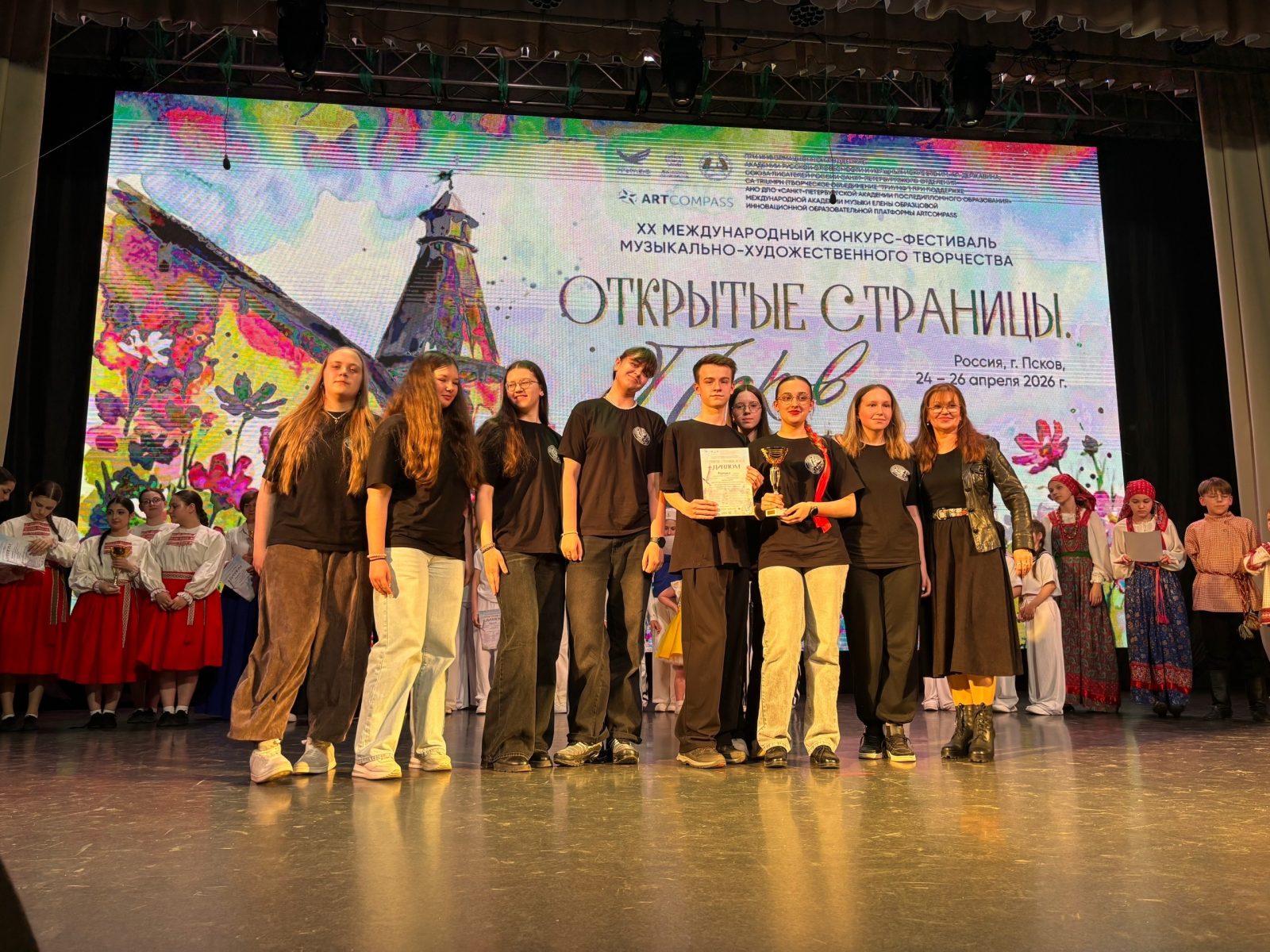 Детский фольклорный ансамбль «Таусень» - руководитель Дементьева Елена Викторовна и концертмейстеры Игнатова Лидия Ильинична, Гришин Александр Дмитриевич с Победой вернулись с Международного конкурса - фестиваля «Открытые страницы. Псков». Конкурс проходил на лучшей площадке города в Доме офицеров. Жюри высоко оценили традиционное творчество юных артистов.