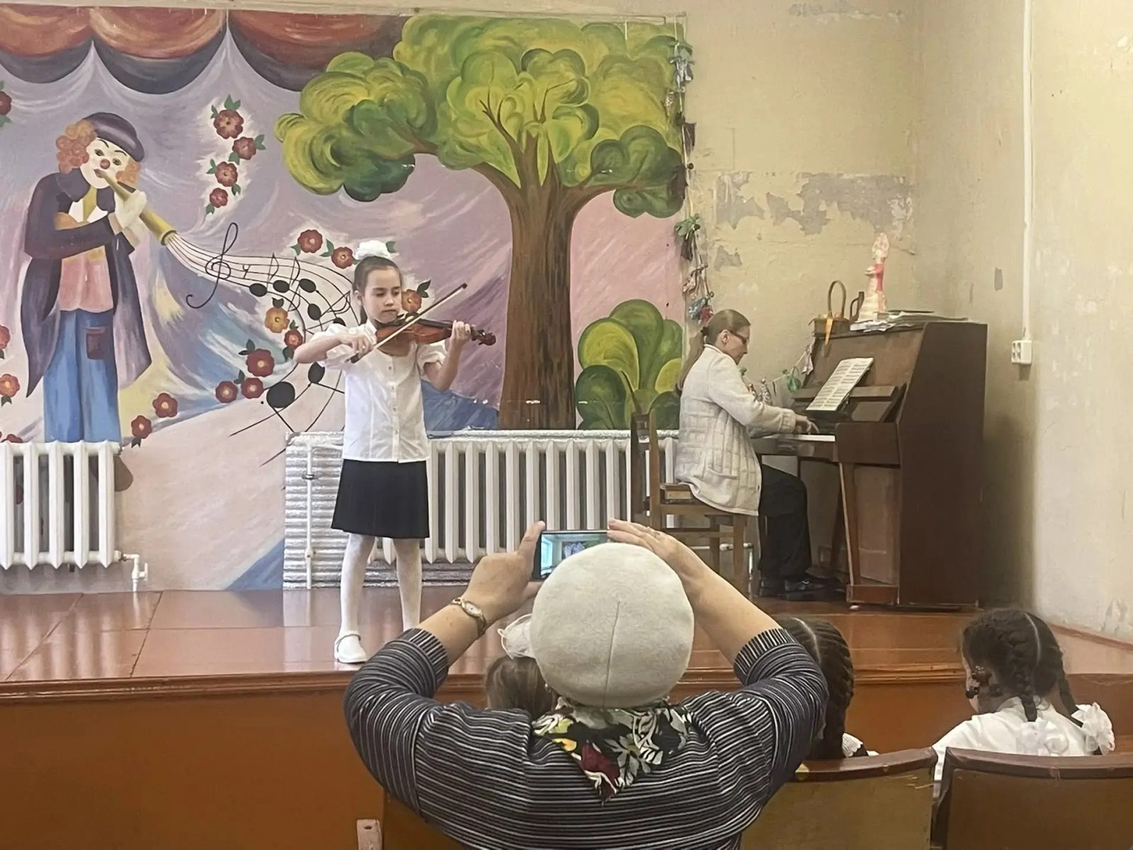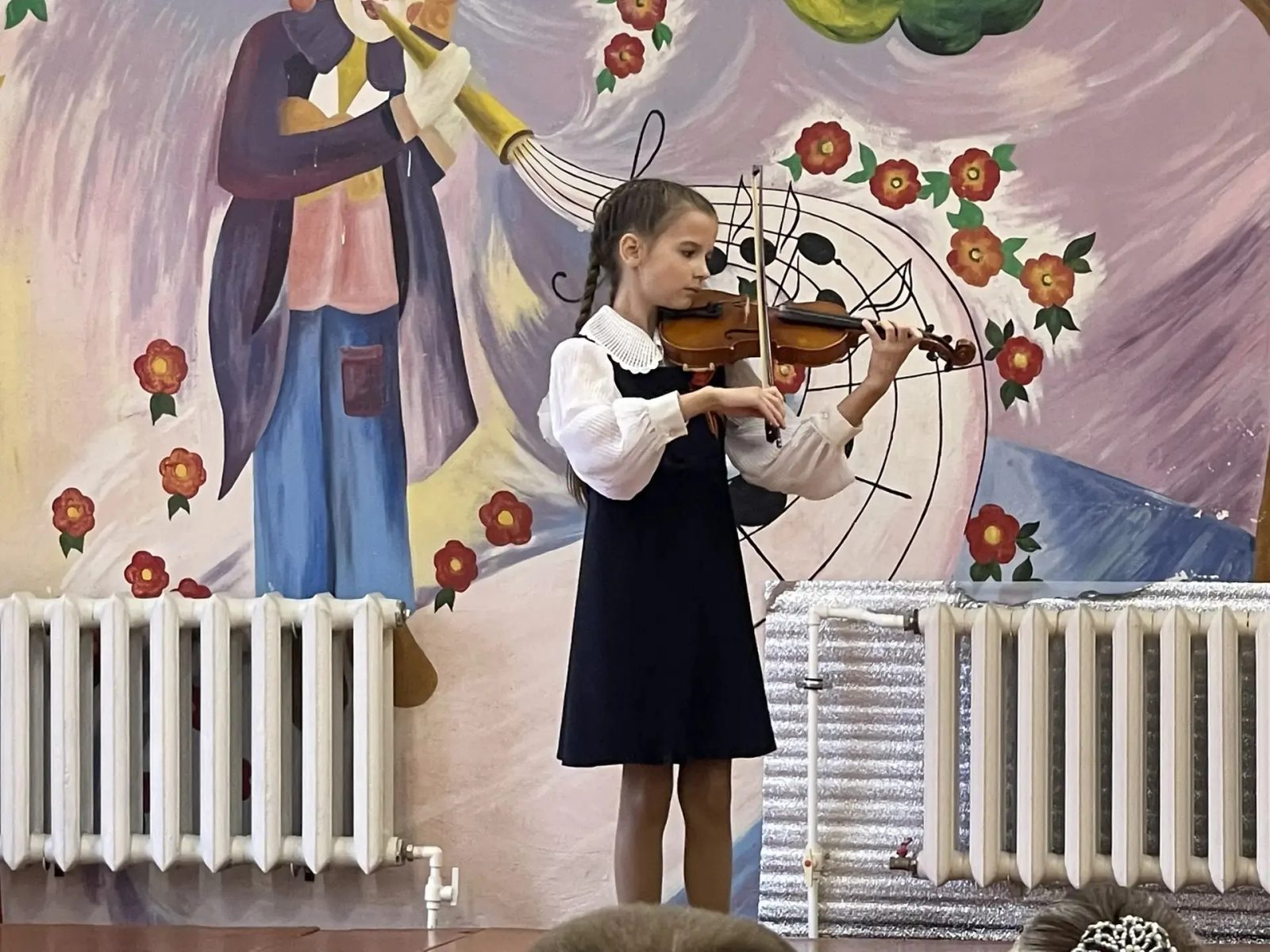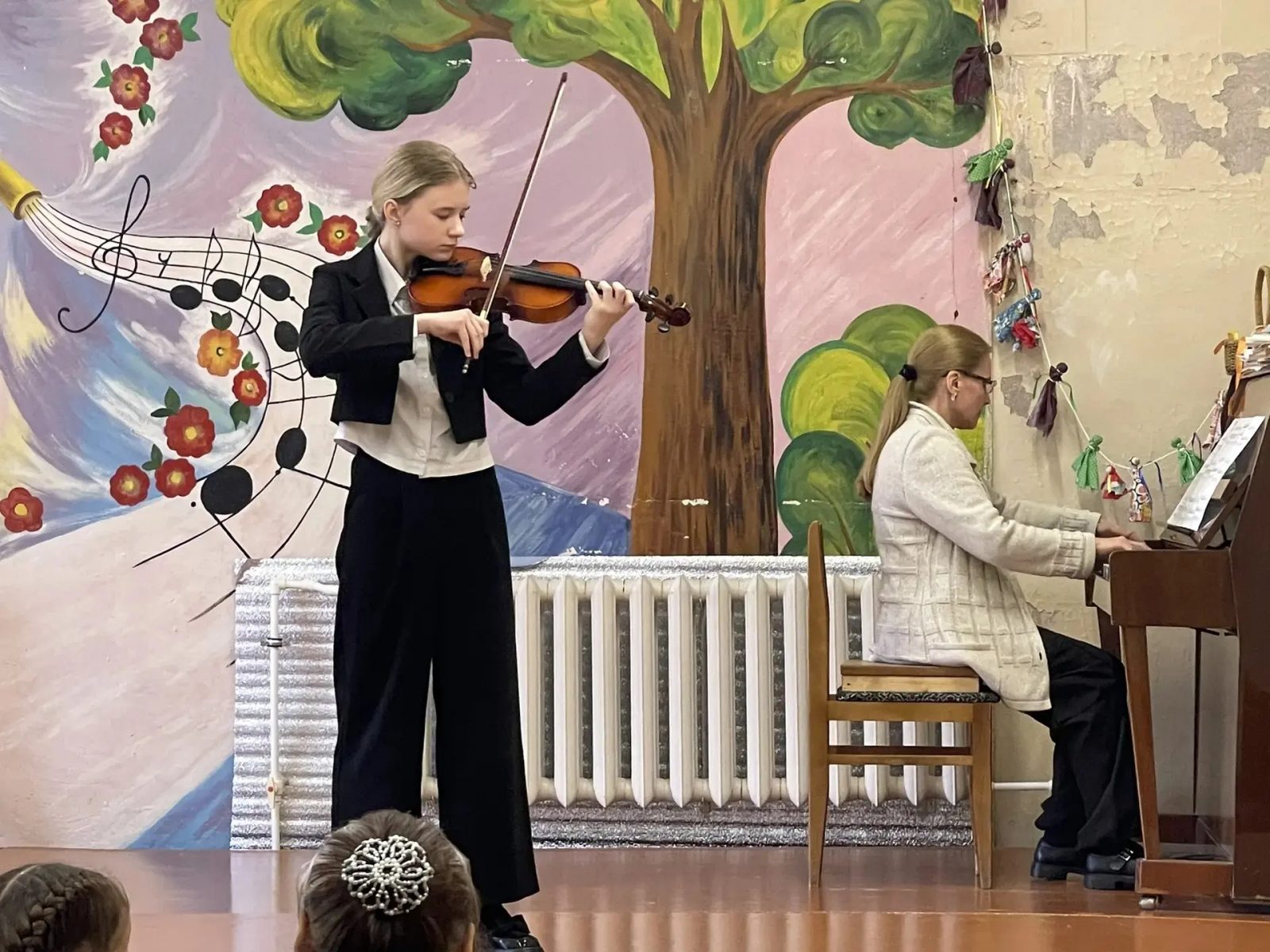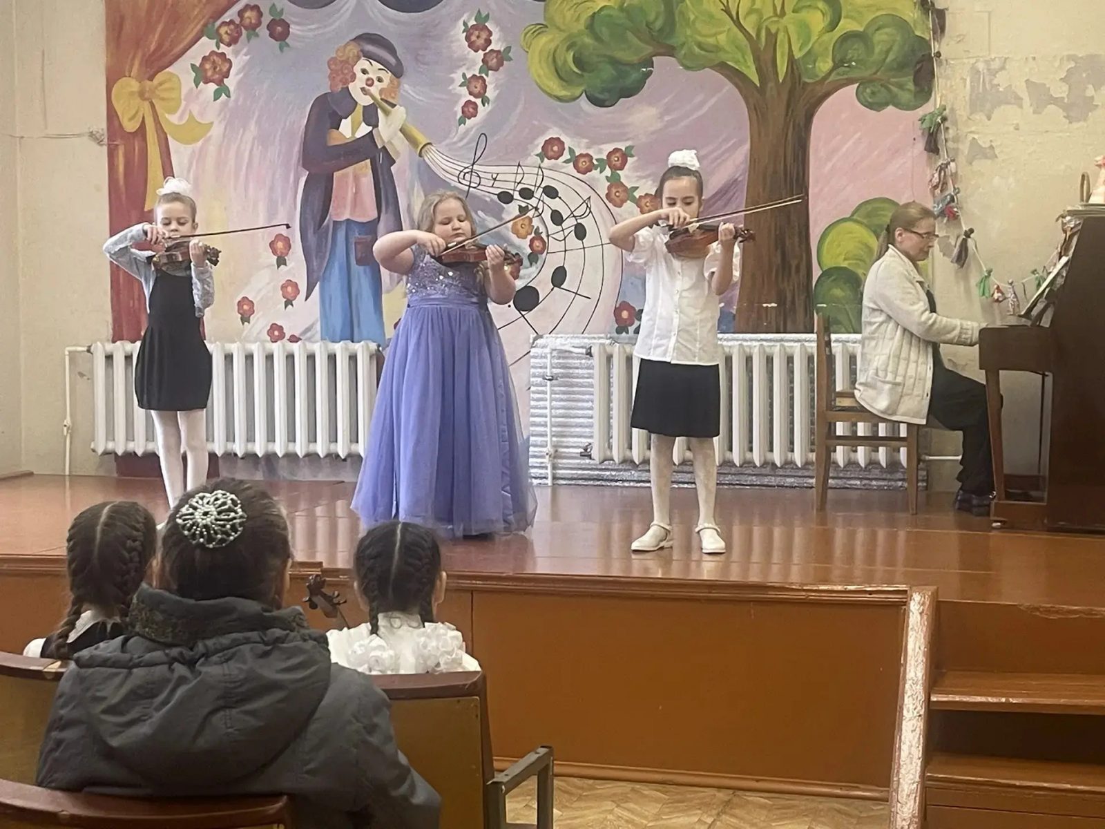 Перед слушателями выступили учащиеся отделения скрипки, начиная с подготовительной группы, заканчивая 6 классом. В исполнении учащихся звучали народные мелодии, произведения Моцарта, Грига, Брамса, русских композиторов – Калинникова, Чайковского, Римского-Корсакова, Прокофьева, а также сочинения нашего преподавателя, композитора и скрипача – Сарскова Ивана Сергеевича. Самые маленькие музыканты, преодолев волнение, впервые вышли на сцену. Обстановка в зале была очень дружелюбной, юных исполнителей поддерживали преподаватели, учащиеся и их родные.