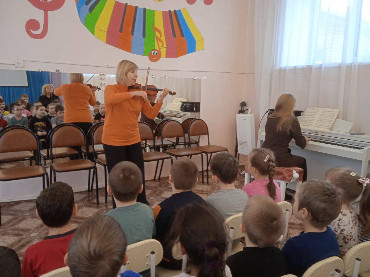 30 января преподаватели нашей школы Марина Анатольевна Сальникова и Наталья Петровна Завадская провели музыкальный урок для воспитанников Детского сада № 22. Дети совершили увлекательное путешествие в мир скрипки и фортепиано. Познакомились с инструментами и даже попробовали на них поиграть.