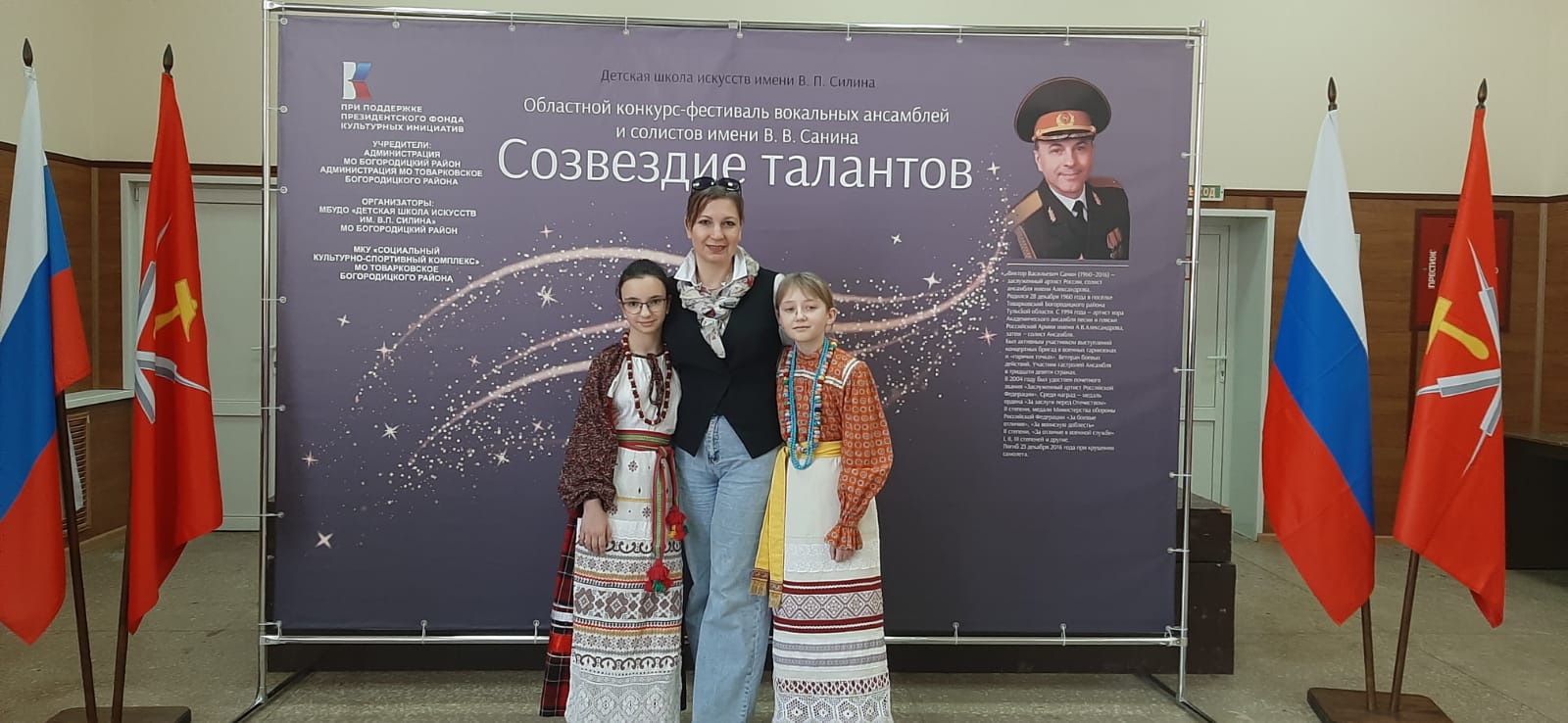 22 марта в поселке Товарковский Богородицкого района состоялся Областной конкурс-фестиваль вокальных ансамблей и солистов "Созвездие талантов-2025" имени заслуженного артиста РФ В. В. Санина, солиста ансамбля песни и пляски Российской армии им. Александрова, посвященного 80-ой годовщине Победы в Великой Отечественной войне 1941-1945гг. Солистки детского фольклорного ансамбля "Таусень" Волкова Анна и Гришина Ксения (пр. Дементьева Елена Викторовна, концертмейстер Игнатова Лидия Ильинична) достойно выступили на этом замечательном конкурсе.