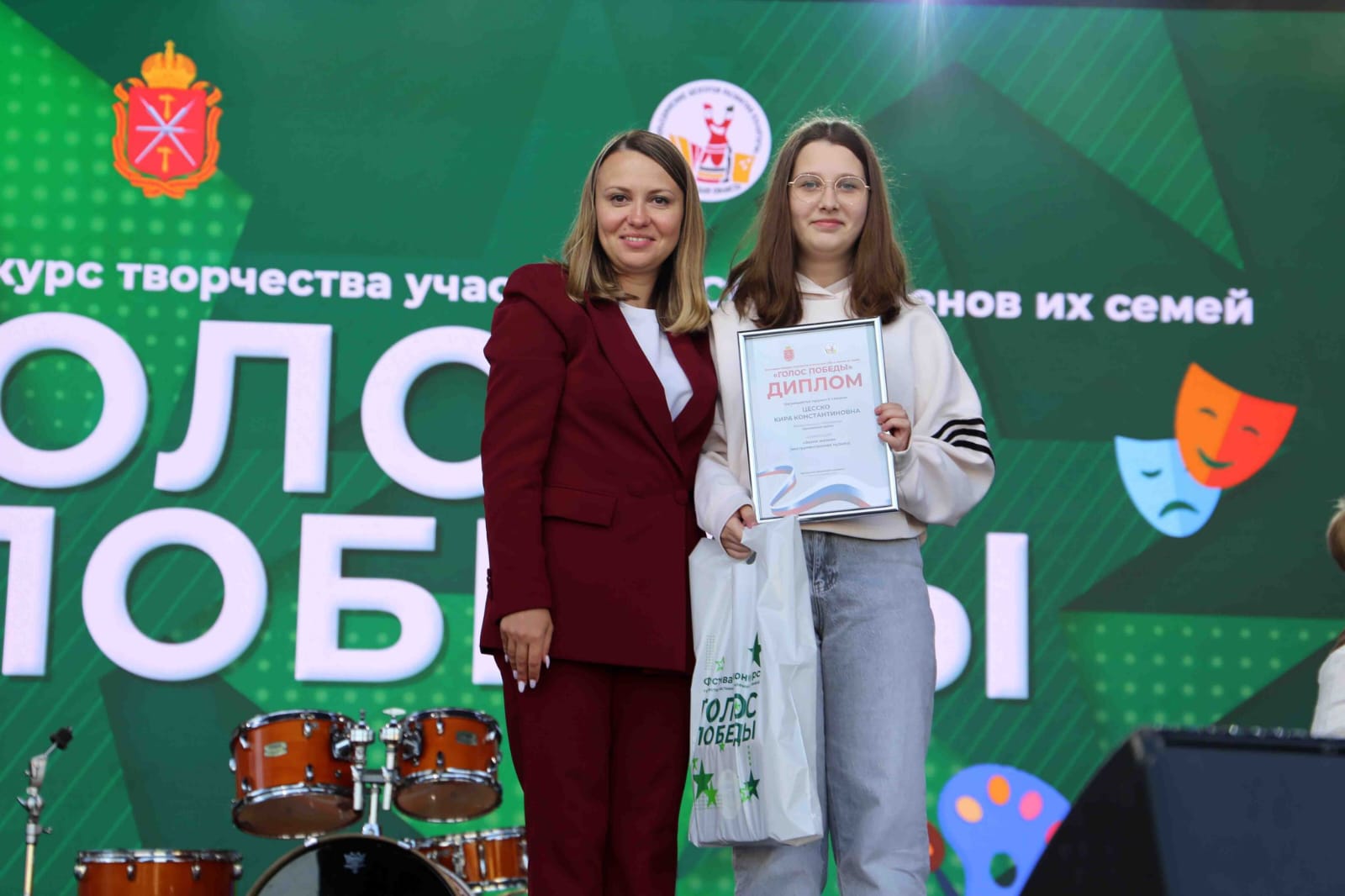 13 сентября состоялось знаменательное событие в рамках празднования Дня города Тулы и Тульской области. Ученицы нашей школы: Меньшикова Есения - 2 класс, преподаватель Черкасова Валентина Львовна и Цесско Кира - 7 класс, преподаватель Сальникова Марина Анатольевна, были награждены памятными подарками и дипломами лауреатов в гала-концерте фестиваля-конкурса участников СВО и членов их семей «Голос Победы!» на сцене Казанской набережной г.Тулы.