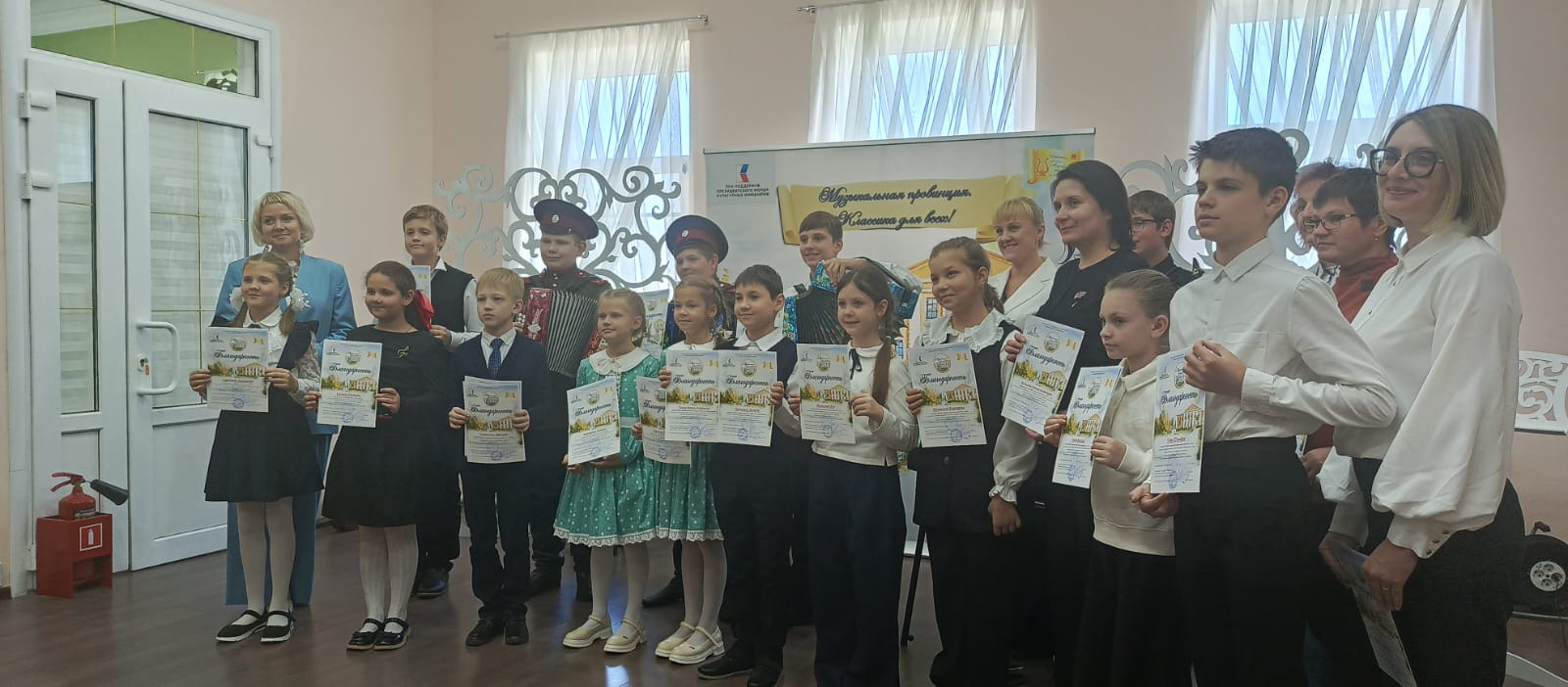 1 октября состоялась выездная концертная поездка в г. Плавск. Концерт «Классика для всех» по проекту «Музыкальная провинция» был приурочен ко Дню музыки и Дню пожилого человека. В нём принял участие учащийся нашей школы Хорошилов Ярослав преподаватель Черкасова В. Л. Концерт проходил в Плавском краеведческом музее в Центре князей Гагариных, что создало особую одухотворённую атмосферу. Среди зрителей были и люди старшего поколения. Концерт прошёл на высоком профессиональном уровне.
