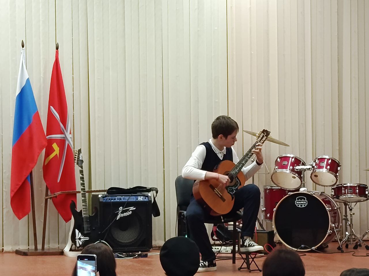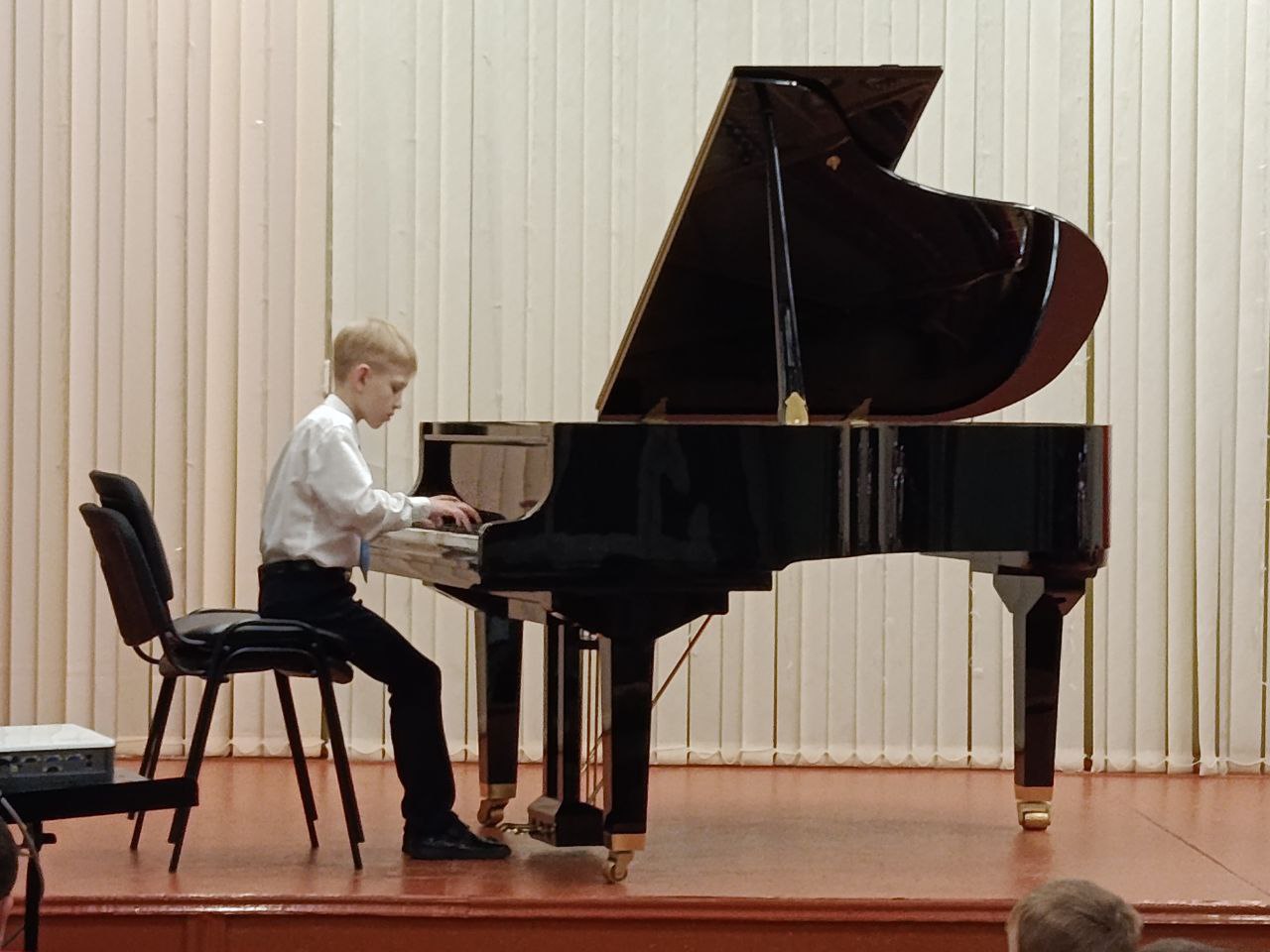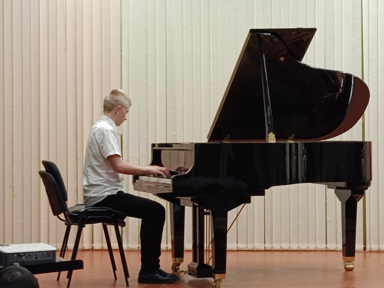 Миляев Анатолий (пр. Новикова Г.И.)и Хорошилов Ярослав ( пр.Черкасова В.Л)исполнили любимые произведения на фортепиано. Приятным сюрпризом было выступление выпускника школы, а ныне студента ТКИ им. А.С. Даргомыжского Кострикова Владислава.